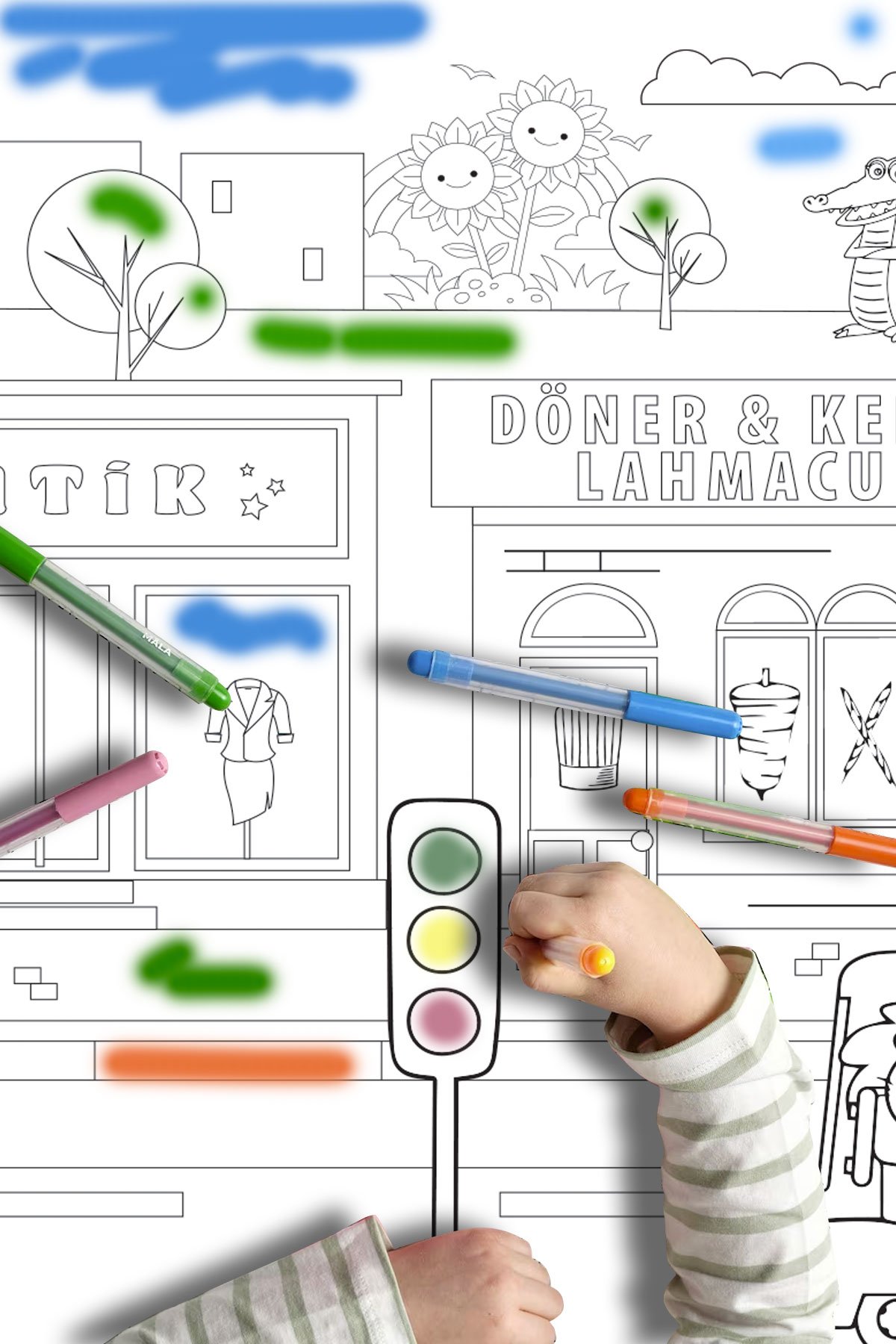 Bu özel konsept, çocukların renk paletini kullanarak kendi şehir maceralarını yazmalarına ve kağıdı diledikleri gibi renklendirmelerine olanak tanır.