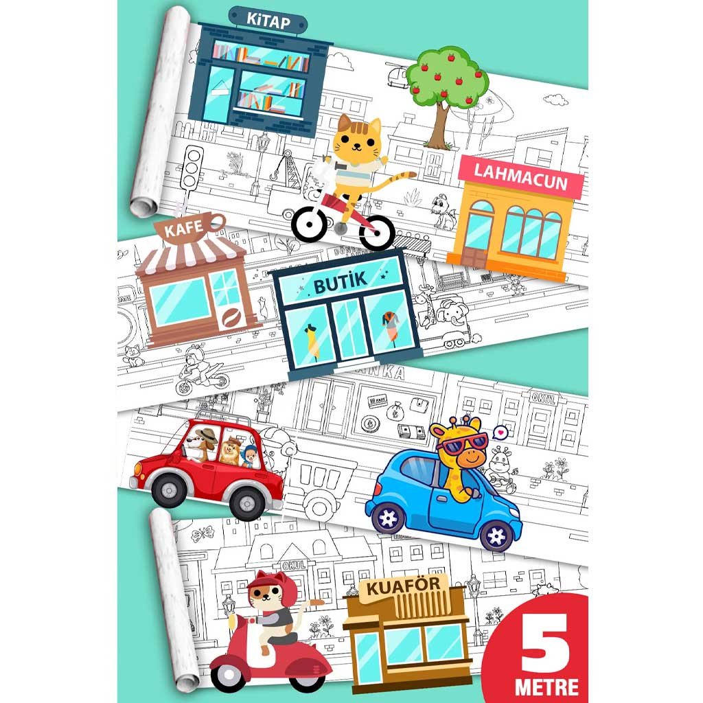 Çocuklarınızın şehir hayatının heyecanını ve canlılığını keşfetmelerine olanak tanımak, farklı şehir sahnelerini renklendirmeleri için tasarlanan bu boyama kağıdı rulosu, 5 metre uzunluğu ve 45 cm genişliği ile gerçek bir şehir macerası sunuyor!