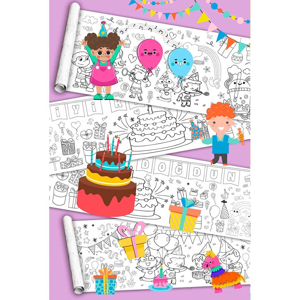 Doğum Günü Partisi Boyama Kağıdı Rulosu, doğum günü çocukları için harika bir hediye alternatifidir. Doğum günleri, özel günler veya sadece renkli bir sürpriz için idealdir.
