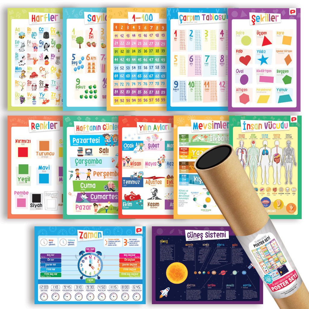 Eğitici Öğretici Poster Seti Türkçe İngilizce 12 Poster 35x50cm