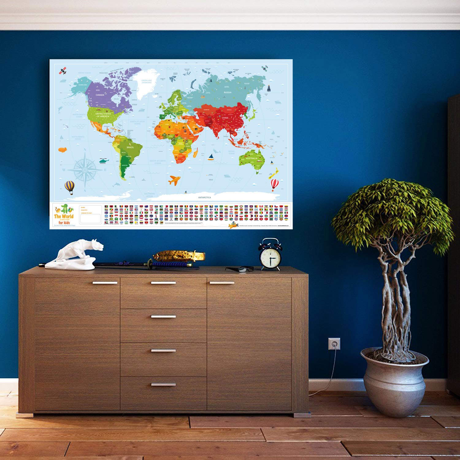 Kazınabilir Çocuk Haritası ile daha önce seyahat ettiğiniz ülkeleri, eyaletleri, bayrakları ile birlikte duvarınızda gösterebilirsiniz.