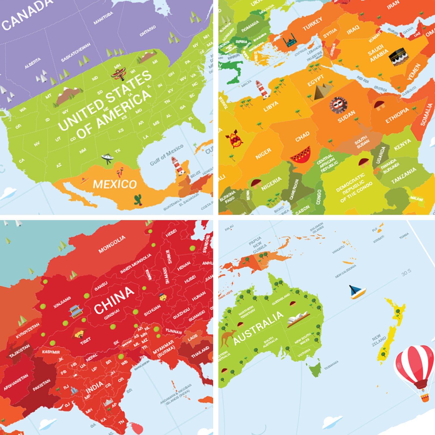 Eyaletli bayraklı KAZINABİLİR ÇOCUK HARİTASI dünya haritası duvarlarınızı süslemenin yanı sıra çocuklarınız için eğiticidir.