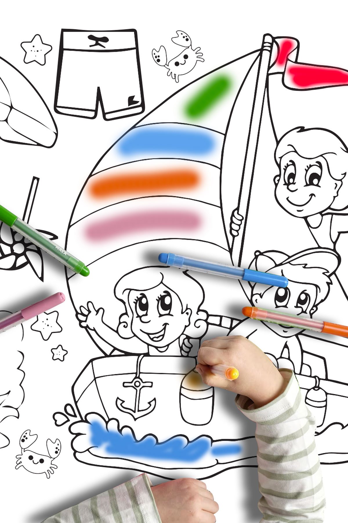 Bu özel konsept, çocukların renk paletini kullanarak kendi yaz maceralarını yazmalarına ve kağıdı diledikleri gibi renklendirmelerine olanak tanır.
